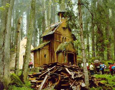 als sie noch nicht beschädigt war. Leider !- Vandalismus und der "Zahn der Zeit" haben dieses einzigartige Denkmal fast vernichtet. Es war sehr schade! Wahrscheinlich ist Ihnen bekannt, daß im heurigen Jahr auf Kosten des tschechoslowakischen Staates eine Generalreparatur der Tussetkapelle durchgeführt wurde. Die Initiative zur Restaurierung setzten einfache Bewunderer und Freunde des Böhmerwaldes durch. Ich rechne mich auch zu diesen; freiwillig arbeite ich hier zum Schutze der Natur. Die neue Kapelle in Philippsreut half zur Realisierung der Restaurierung von der Originalkapelle auf dem Tussetberg. |